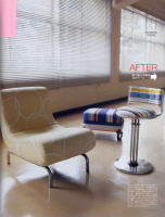 左が3種類の椅子の張り替え前の写真を3方向から撮影した写真を掲載したページです。張り地は、編集部の方が持ち込んでくださった布地を使用して張り替えさせていただきました。通常、私たちがお勧めしている”イス張り用の布地”ではありませんでしたが、基本的にはどのような布地でも張ることができます。そうして張り替えた椅子は右側の写真。ソファは大柄の○模様、スツールはストライプ、カウンターチェアはボーダー模様で張り替えさせていただきました。アラ・カワもHP作成のためデジタルカメラで写真を撮っていますが、やはりプロの構図やレイアウトは違いますね。アラ・カワは”イス張りのプロ”なのでこちら側で精一杯仕事させていただきました。